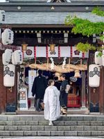 雅やかな和装に身を包み、静かな境内を進むその姿は、 まるで時代を越えて受け継がれてきた物語の一場面のよう。 白無垢や色打掛に身を包むと、自然と背筋が伸び、花嫁としての凛とした美しさが際立ちます。花婿も紋付き袴に身を整え、格式高い神前で誓いを立てるその姿は、言葉では表せないほど荘厳。