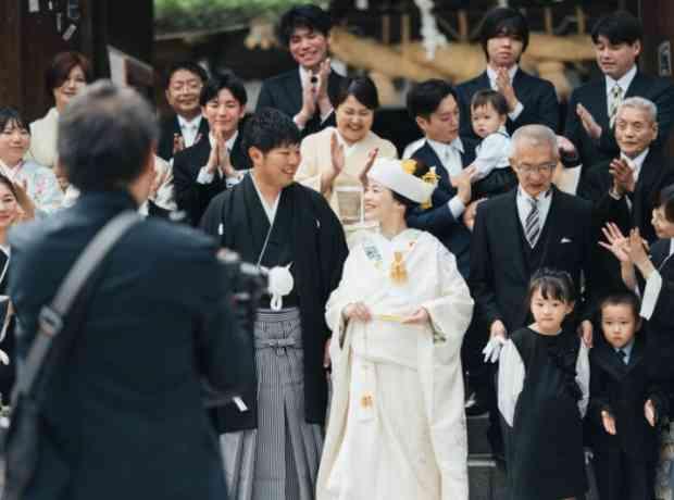 多くの大切なゲストをご招待され、久しぶりに再会したご友人との語らいや、ご家族へ想いを伝えるあたたかな時間に包まれた、とても賑やかで楽しい披露宴となりました。また、おふたりがセレクトされた衣裳もとても印象に残っております。神社での白無垢、披露宴での色打掛、さらにドレスと、異なる装いを纏われましたが、どれも本当にお似合いで、私たちまでうっとりしてしまいました。