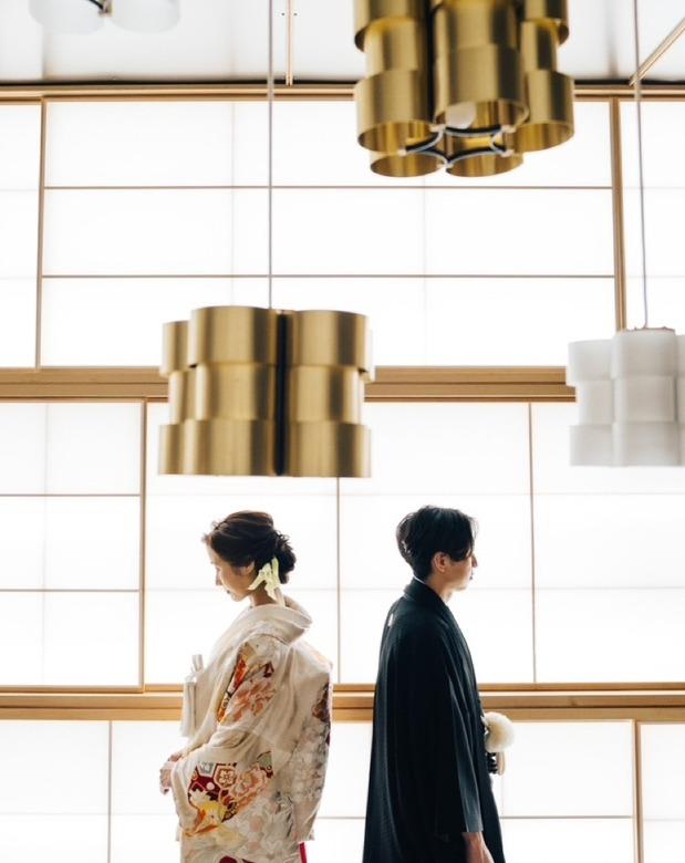 障子越しに差し込むやわらかな光と、繊細な木の意匠が印象的な「清道」。 伝統とモダンが心地よく調和する、洗練された和の空間で、特別な一日を優しく包み込みます。