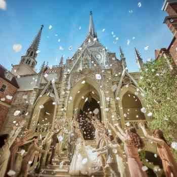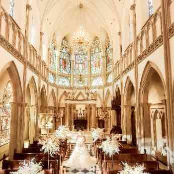 - 煌めくステンドグラス、伝統を貫く石畳のバージンロード。中世ヨーロッパを思わせるクラシカルな雰囲気。