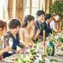 季節の草花を使用した会場コーディネートでナチュラル感を演出。ゲストもおふたりもリラックスして過ごせる空間でアットホームなパーティーに。会場に併設するイングリッシュガーデンでのデザートビュッフェも人気。