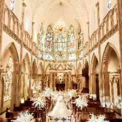 【英国伝統のゴシック様式を再現した大聖堂】世紀を超えて煌めくステンドグラス、伝統を貫く石畳のバージンロード。本物にこだわる荘厳な空間でおこなうセレモニーはまさに豪華絢爛。圧巻のスケールをぜひ体感して。