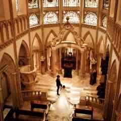 【英国伝統のゴシック様式を再現した大聖堂】世紀を超えて煌めくステンドグラス、伝統を貫く石畳のバージンロード。本物にこだわる荘厳な空間でおこなうセレモニーはまさに豪華絢爛。圧巻のスケールをぜひ体感して。