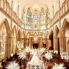 【英国伝統のゴシック様式を再現した大聖堂】世紀を超えて煌めくステンドグラス、伝統を貫く石畳のバージンロード。本物にこだわる荘厳な空間でおこなうセレモニーはまさに豪華絢爛。圧巻のスケールをぜひ体感して。