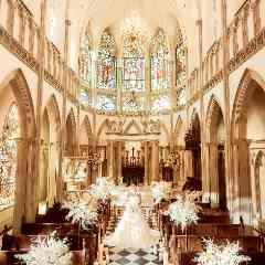 【英国伝統のゴシック様式を再現した大聖堂】世紀を超えて煌めくステンドグラス、伝統を貫く石畳のバージンロード。本物にこだわる荘厳な空間でおこなうセレモニーはまさに豪華絢爛。圧巻のスケールをぜひ体感して。