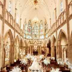 【英国伝統のゴシック様式を再現した大聖堂】世紀を超えて煌めくステンドグラス、伝統を貫く石畳のバージンロード。本物にこだわる荘厳な空間でおこなうセレモニーはまさに豪華絢爛。圧巻のスケールをぜひ体感して。