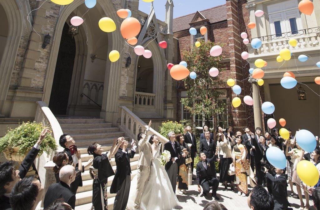 感動的な挙式の後、「ゲストのみんなにも楽しんでほしい」というお二人は、ブーケトス・バルーンリリース・お菓子まきと盛りだくさんの内容でした! 小さなお子様からご年配の方まで、とても楽しそうに参加してくださいました。 何より式を無事に終えたお二人の笑顔が一段と輝いていました!