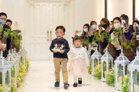 お2人がお世話になっているご家族様のお子様に是非!とお話してくださっていたリングボーイ&ガール。 登場した途端に皆様から可愛い!!! のお声がたくさん上がり、一気に和やかな雰囲気になりましたね。 ゆっくり慎重に、とても上手に歩いていただけ大成功☆ お返しプレゼントも喜んでる顔が素敵でした!!