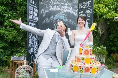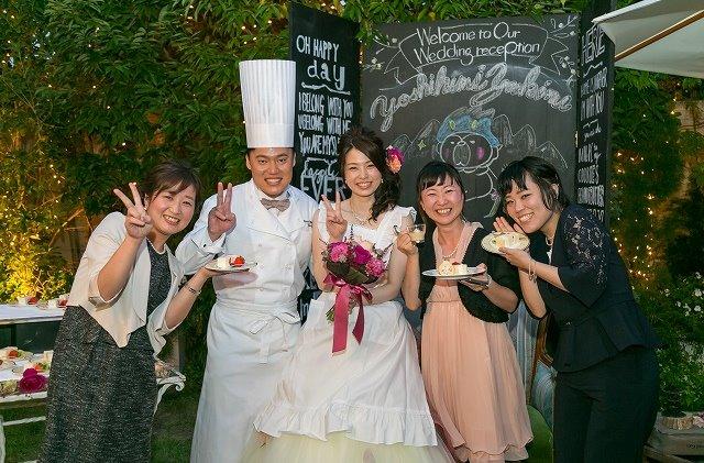 参加していただいたゲストの方との交流の時間を多くとり、 ゲストの方も自分たちも楽しめる披露宴にしたいと考えていました。再入場後はフォトラウンドを行い、ゲストの方々とこちらが 用意した様々なポーズで写真を撮りバラエティに富んだ写真を撮ることが出来ました。後半はデザートビュッフェがあり、 新郎はコック服、新婦はエプロンでデザートを振る舞いゲストの方々からも好評でした。
