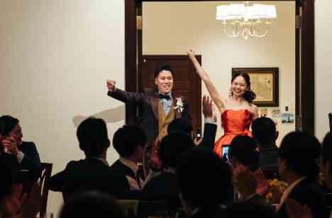 お色直しの再入場はおふたりがダンス! 皆様おなじみのあの曲が流れたらメインの扉が開きレッツダンス! そしてガーデンからもゲストのダンサーがサプライズ入場!会場内は拍手と歓声で大盛り上がりでした。おふたりが最初の打ち合わせの際からこだわっておられた「ゲストにも結婚式を心から楽しんでほしい」という願いが叶った瞬間でした。