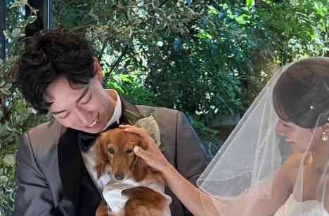 新婦様のご実家の愛犬・ミニチュアダックスのさくちゃん! 初めてアイネスヴィラノッツェ宝ヶ池に来てくださったから、「さくちゃんと一緒に挙式を作り上げたい!」とおっしゃっていただいており、リングキッズと結婚証明書への肉球スタンプを頑張ってくれました! そのおかげもあり、会場はあたたかな拍手と笑顔に包まれました!