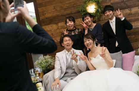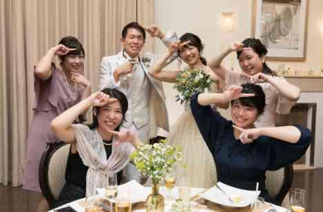 ありきたりなポーズでは無く、お2人がお好きなお笑い芸人のポーズや、ハネムーンで行くハワイのアロハポーズのくじを手作りでご用意され、普段はお堅いと思っていた方が、おちゃらけポーズ(^O^) 会場が一気に笑顔で包まれておりました。