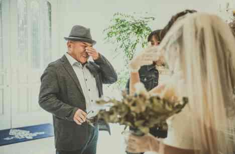 挙式リハーサルで初めて新婦様のお姿を見られた親御様の涙。こちらまでうるっときますね。 人前式では、新婦様の姪っ子さんが指輪を運んで来て下さったり、誓いのキスはあえて挙式中にするのではなく、退場後にクロージングキス❤ ゲストのきゃーという歓声がお2人の狙いでした。