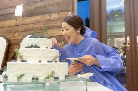ありきたりは嫌で、おもしろい事が大好きな2人なので、ケーキ入刀後は、2人羽織でケーキを食べさし合いっこしました(笑)家で動画をみてどうしたら面白く食べさせれるか等も研究していたため、本番ではゲストも大爆笑!初めても2人羽織で思い出も2倍になりました。