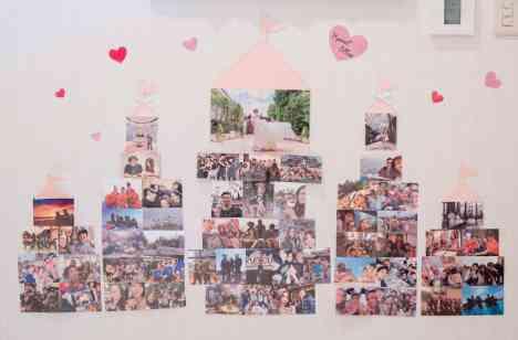 ご招待された方皆様が写っているお写真をご用意され、エレベータの中にシンデレラ城にして飾られました❤ シンデレラ城が皆様をお出迎えし、とてもキュートな演出に皆様びっくりしておられ、どこに自分が写っているのか沢山見てくださっておりました!!
