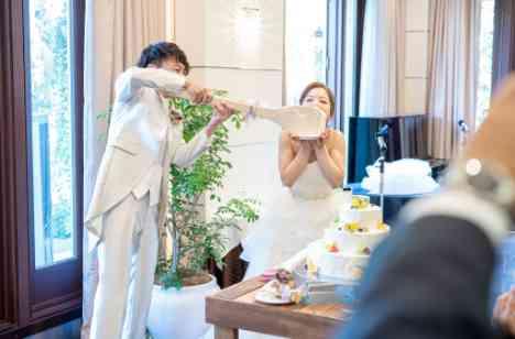 始めての共同作業ケーキ入刀。その後にファーストバイトをされました!アイテムは新婦様から新郎様へBIGしゃもじ❤とても可愛くお写真も沢山撮って頂けました。そんな中続いて新郎様から新婦様へはなんと!BIGしゃもじ!!大きな口を開けて笑顔いっぱいでファーストバイトをして頂きました(*^_^*)
