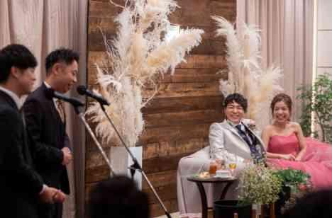 ご余興は漫才をしてくださりました! プロ顔負けの漫才を披露してくださり会場全体が大爆笑で大盛り上がりでした!! お2人の事を良く知っておられるご友人様だからこそ出来るネタは本当に面白く素晴らしかったです(^^♪