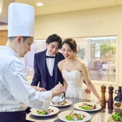 シェフが産地・鮮度にこだわった食材を使った料理を目の前で調理してくれる。旬のお野菜を使った温まるスープ、自慢の焼き立てパン、黒毛和牛が贅沢に試食できる。メインはオマール海老を選択することもでき満足度◎