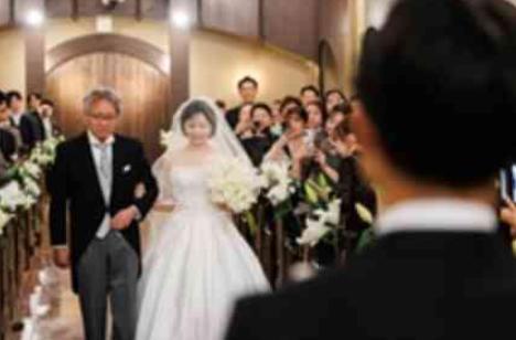挙式にてエスコートするお父様の涙