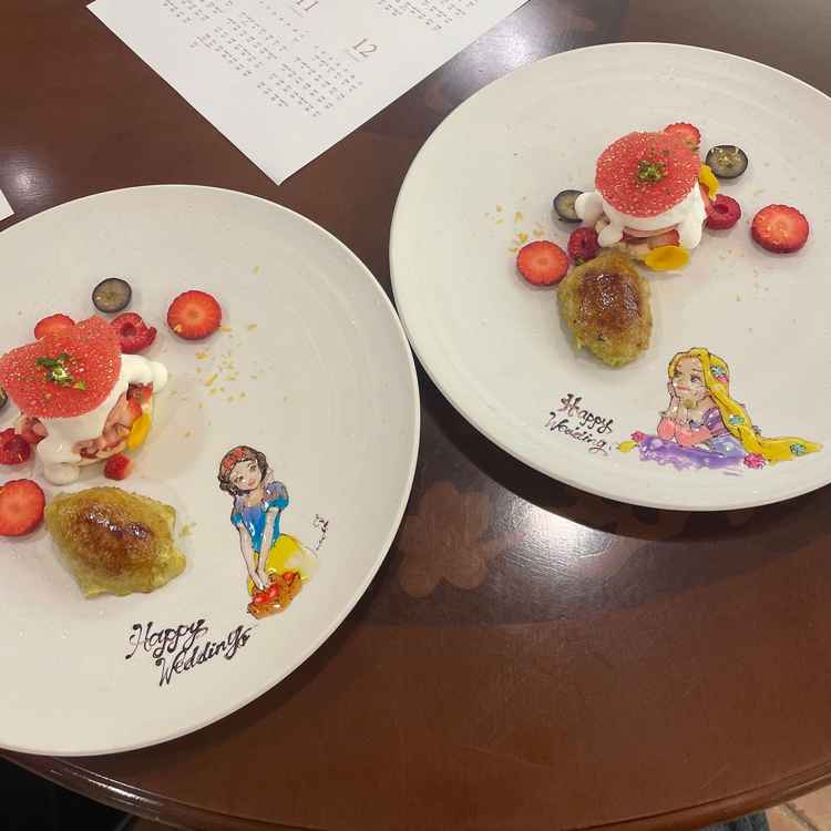 最後にデザートプレートを出して頂きましたが、お話の中で私が好きと伝えていたプリンセスをプレートにとっても可愛く書いてくださり感動しました!