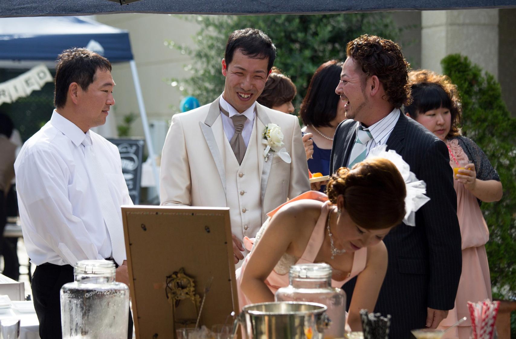 7月の結婚式、夏らしいおもてなしでゲストとの時間を過ごしたおふたり。 BBQやスイカのオリジナルカクテルで会話を楽しみながら、 忘れられない夏の思い出を♪