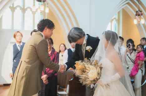 バージンロードは新婦様のこれまでの人生を表しているとも言われています。 お二人の結婚式のテーマともリンクするため、挙式の新婦入場で親御様と一緒に歩くお時間を大切にしていただきました。 一歩一歩ゆっくりと。 大切なゲストを思い浮かべながら、そしてこれまでの人生を振り返りながら新郎様が待つ場所へと進んでいきます。