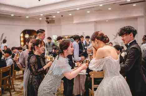 ご招待するゲストの人数が多いおふたり。皆様とたくさんお話ができるように歓談のお時間も大切にしました。ゲストと近い距離でお話をしたり、写真を撮ったり。笑顔の絶えないとても素敵な時間となりました。パーティの中ではゲスト全員が参加できるゲームを取り入れたりとその場にいる全員が常に楽しめるそんな空間を創りました。