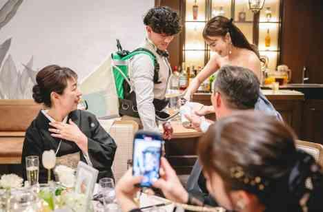 「とにかく何でもやってみる」というおふたり。新婦様のご希望でビールサーブをしながら再入場。ゲストの皆様にご参加いただいたゲームでは『新郎様なら目隠ししてても、新婦様の手わかる?わからない?』など。新郎新婦様のチャレンジをゲストの皆様が予想するゲームを行い、おふたりもゲストも楽しめるお時間となりました。
