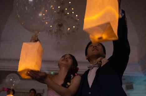 クライマックスには映画にも出てくるランタンのシーンを再現しました。 結婚式当日は新婦の誕生日でもあったため、ゲストの皆様にバルーンランタン演出に参加してもらいウエディングと誕生日のお祝いをしていただきました。 とても幻想的で素敵な世界観でした。