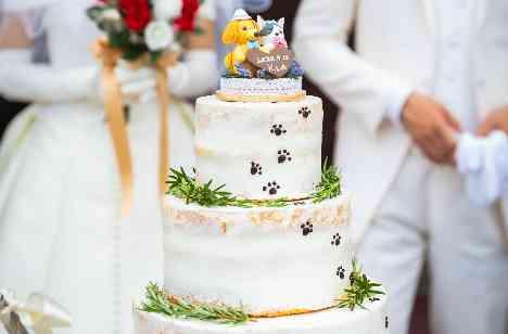 私は幼いころから犬を飼っていて、彼は猫を飼っていたので 今まで出会ったわんちゃん・にゃんちゃんにも感謝の想いを込めた 私たちらしいケーキにしました♪ 可愛く足跡がついているのがお気に入りです(^^)