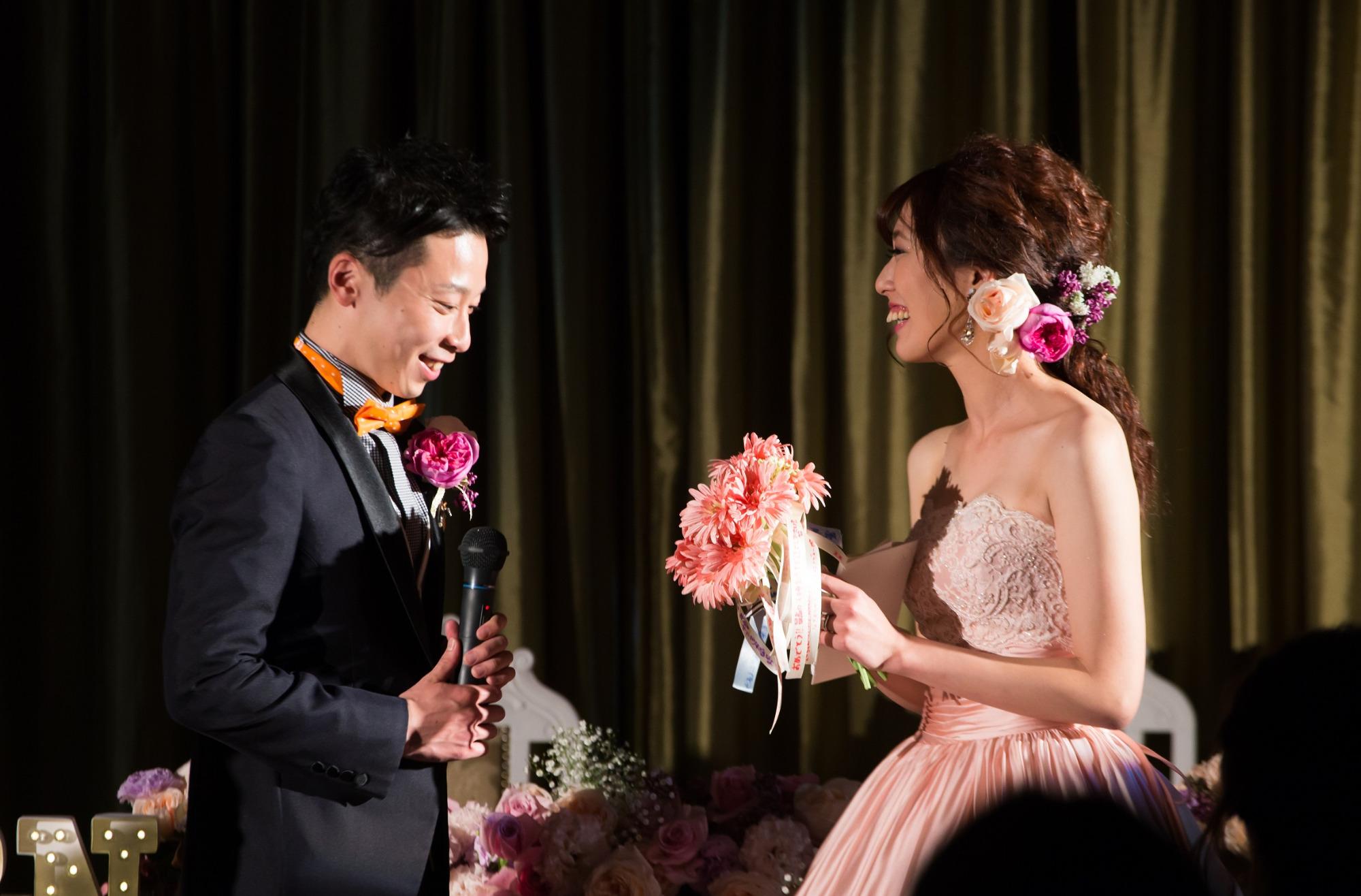 披露宴のクライマックスには新郎様から新婦様へサプライズ。新婦様の職場の同僚と協力して作成した映像に加え、普段は言えない感謝を言葉に、共に歩むこれからの人生を誓いました。