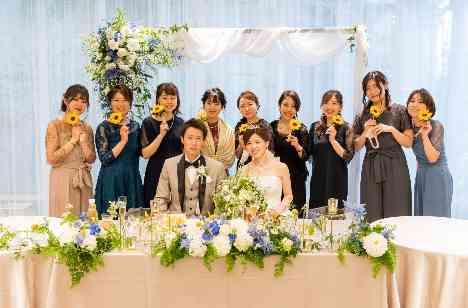 全体的にブルー×whiteで爽やかなコーディネートを選ばれたお二人。メインバッグのガゼボには柔らかいオーガンジーとメインテーブルと同じお花をあしらってまとまりのあるコーディネートに。フォトブースにもにもなるメインバックの装飾は大人気☆ゲストの皆様とたくさんのお写真を残されました♩メインバックのカーテンをオープンすると自然光が差し込み明るく柔らかい雰囲気になります!