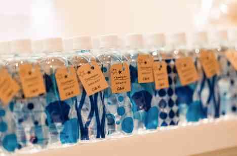 披露宴のお見送りの際にお渡しするプチギフトはお二人のテーマカラーでもあるブルーのラベルでご用意♩プチギフトは何にしようと迷われる新郎新婦様も多いのですがお気持ちなので何でゲストの方はきっと何でも嬉しいはず☆せっかくなら記念に残るようなもの、日付とイニシャル入りのタグを付けたりお二人らしいものだといいですね♩