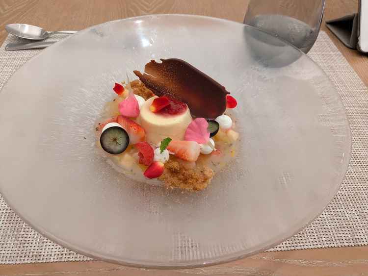 前菜から感動で、キャビアやウニ、オマールエビなど海の幸の旨みが濃厚で贅沢でした。フォアグラと牛フィレ肉はとろける美味しさ。蜂蜜のババロアと果物ゼリーのデザートも上品で、見た目にも華やかでした。