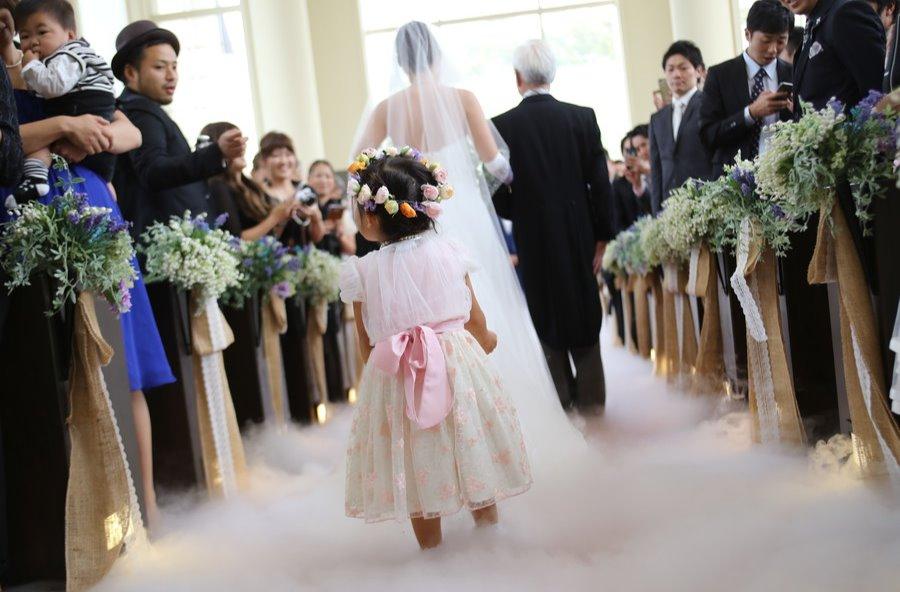 和美さんとお父さんの入場を温かく見守ってくれた、天使のようなトレーンベアラー。たくさんのご友人に愛されているおふたり。チャペルには100名を超えるゲストの皆さまでいっぱいになりました!!