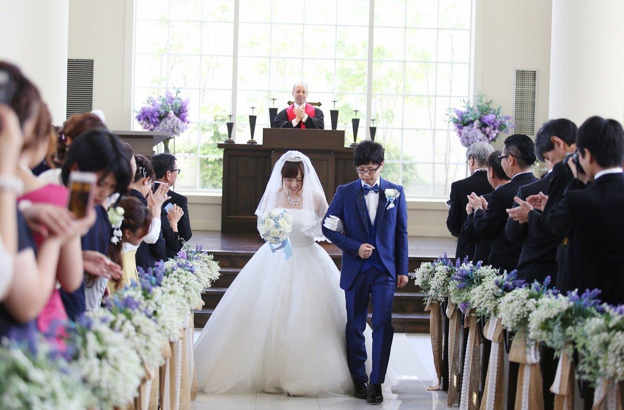 当日は晴天に恵まれ、真っ白なシャトーに自然光が眩しく射し込んだ。雲の上を歩くようなシルキーミスト、フルートの生演奏や聖歌隊の歌も、感動的な挙式へと導いた。「祭壇側に少し傾斜している造りなので、皆様の表情がよく見えて良かったです。勤めていた幼稚園の園児たちもアフターセレモニーから参加してくれました」。