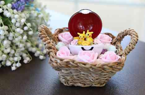 ゲストのお席には様々なポケモンキャラが一体ずつ配置され、皆様を笑顔にするお迎えをしました。 パーティーの後半には新郎新婦様が用意された素敵なプレゼント、皆様の席に置かれたポケモンキャラクターを使って抽選しました。 色々なプレゼントを手にされ皆様は大喜びでした。