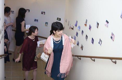 受付ホールや回廊などの壁面には新郎新婦様が小さい頃から現在までの写真をたくさん展示しました、ご友人やご親戚、ご家族の皆様もご自分たちが一緒に写っている懐かしい写真や楽しい写真を見ながら笑顔で思い出話に花が咲いていました。