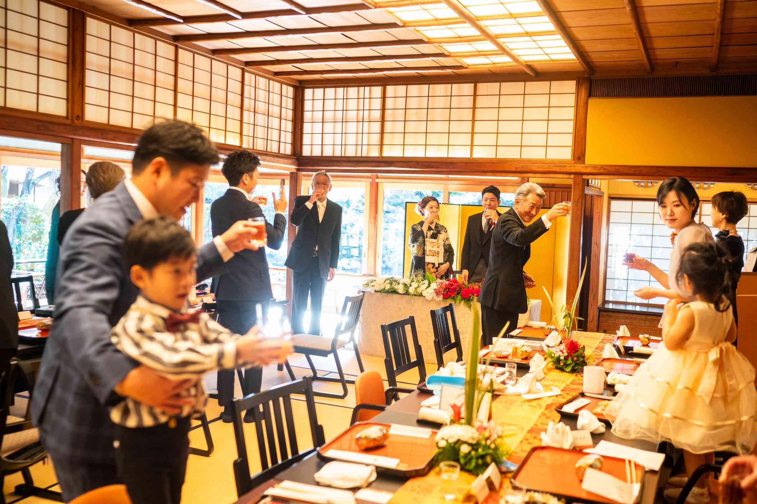 最大80名がお入りいただける『大広間』は天井が高く開放的、大きな舞台では様々な演出が可能です。 一番人気の『御幸の間』は二方の窓から自然光が入り、自然に囲まれた明るい雰囲気の中で披露宴を行えます。