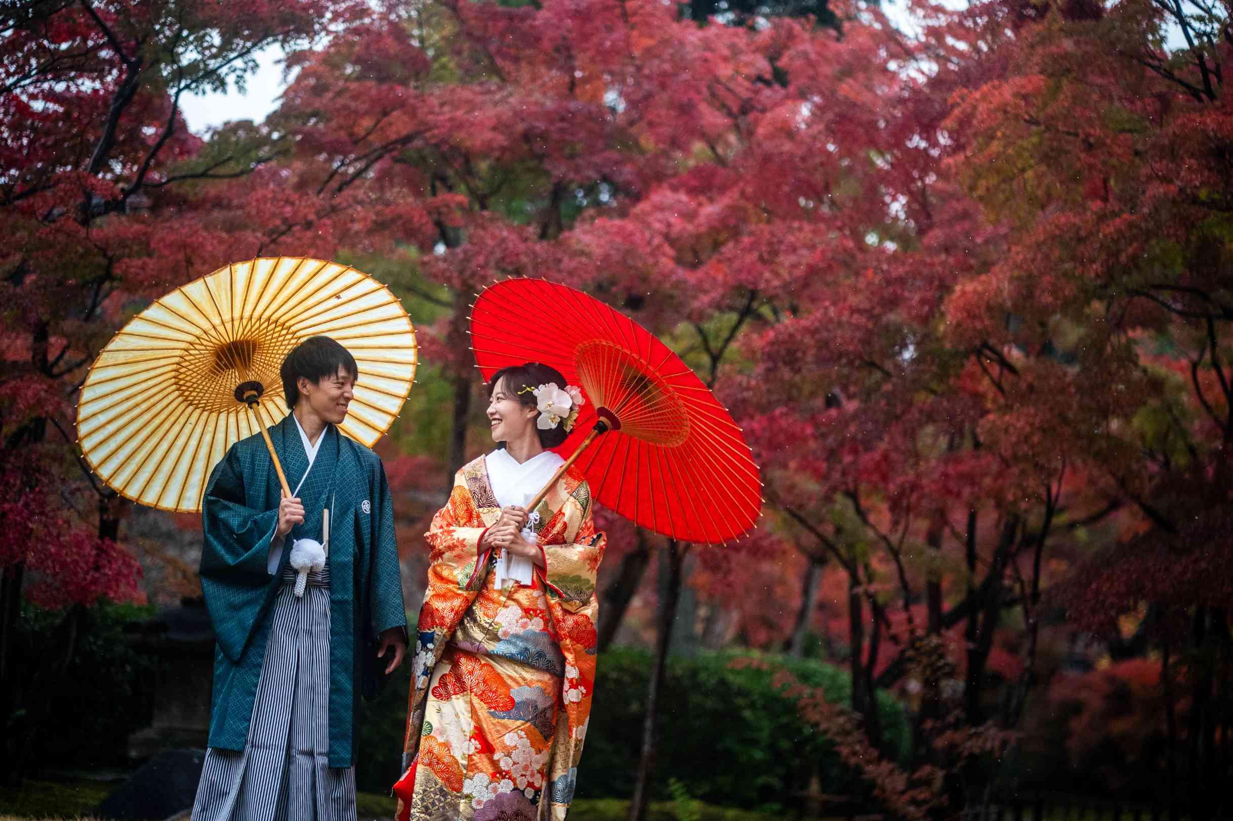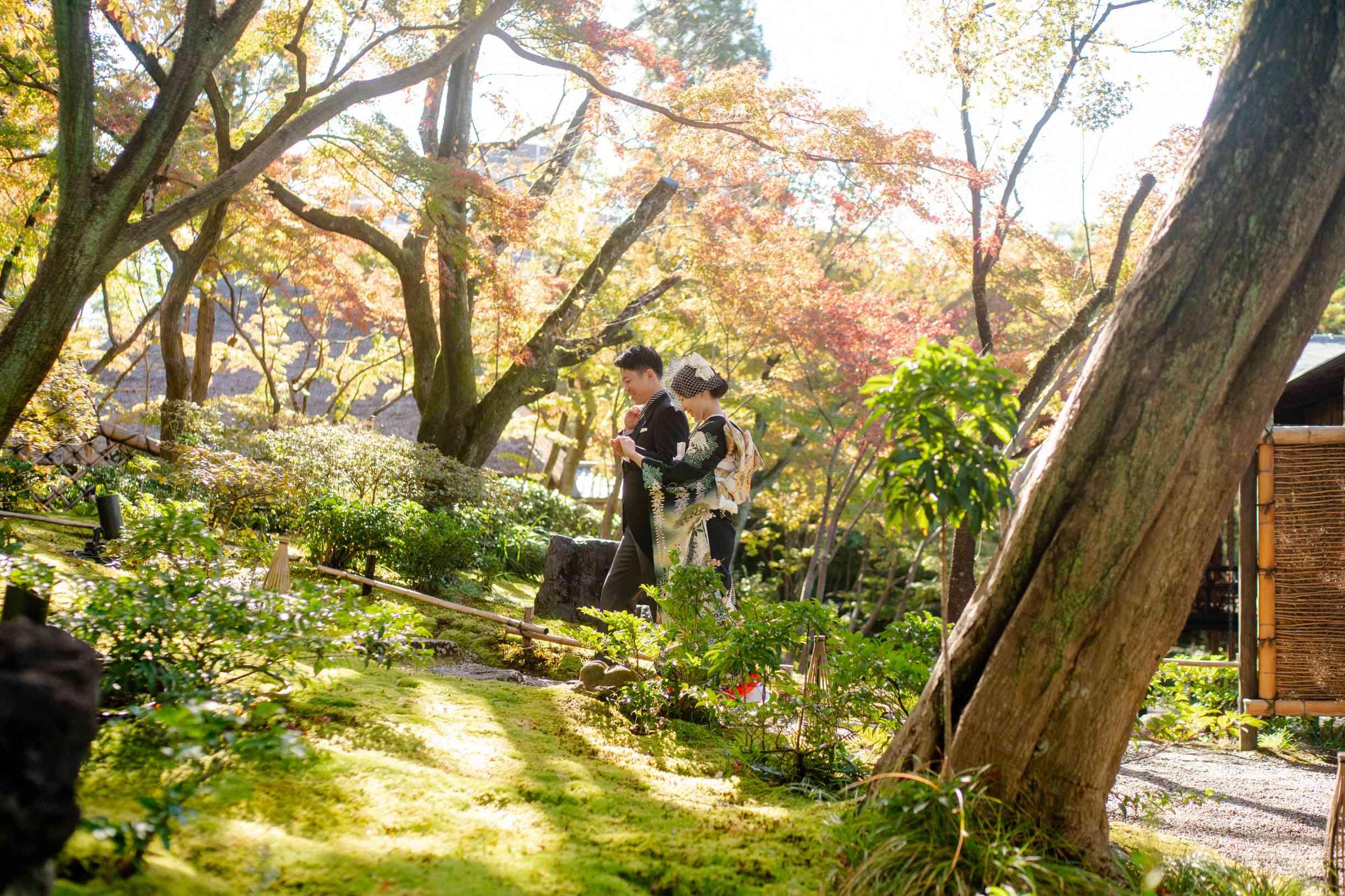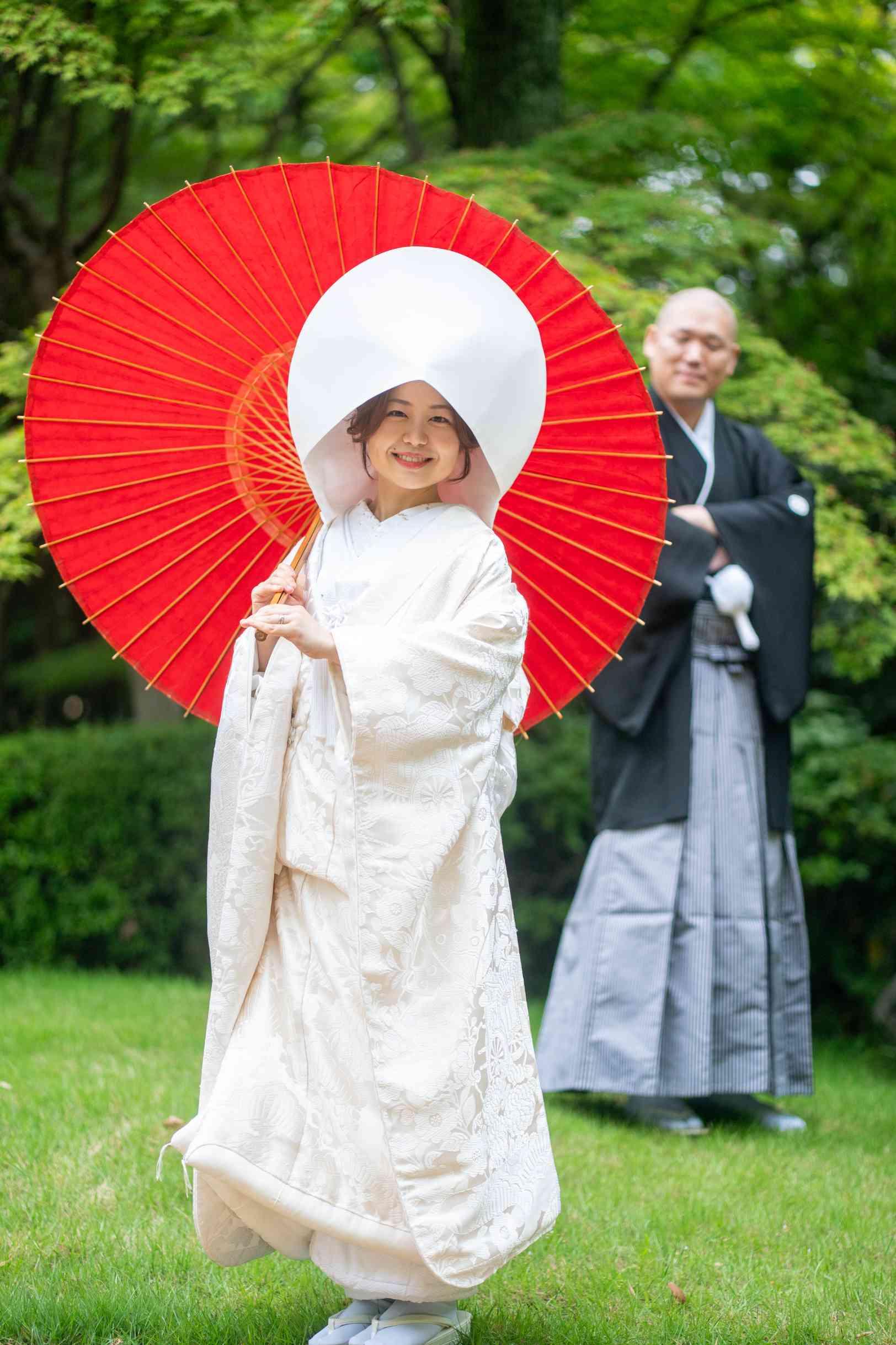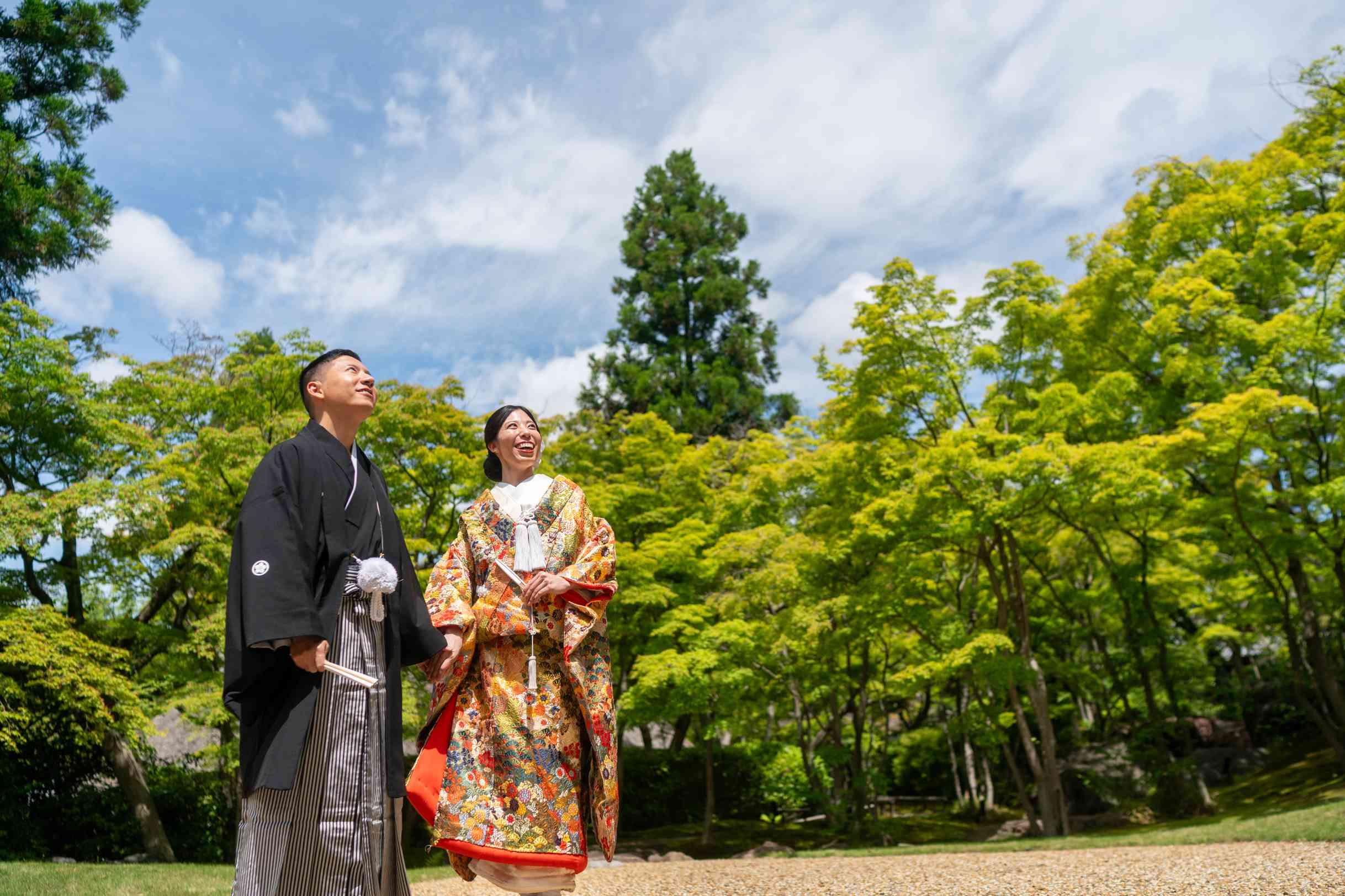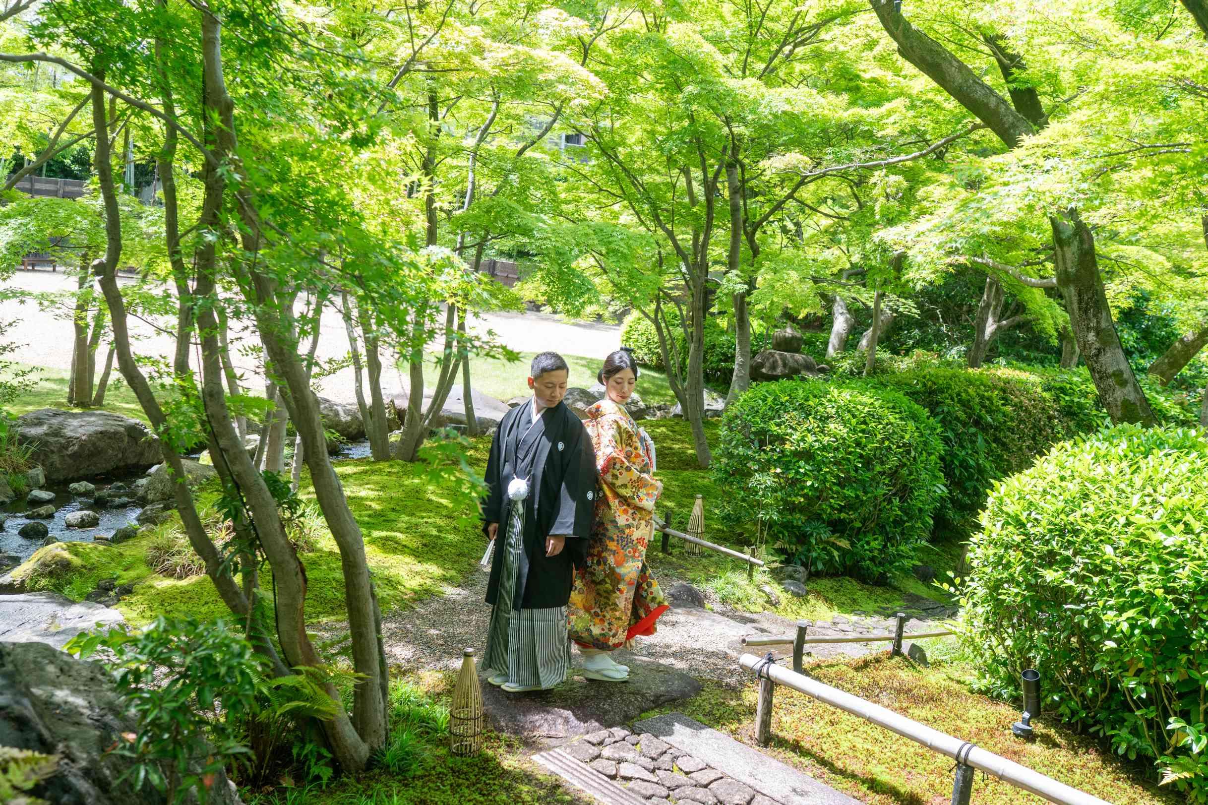 4000坪ほどの広大な日本庭園は、春の桜、夏の深緑、秋の紅葉、冬の閑林と、いつ訪れても思い出に残るお写真を撮ることができます。おふたりはもちろん、ゲストの皆様にもお喜びいただけます。