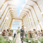 天窓から降り注ぐやさしい自然光、光のアーチを表現したデザイン。 天井高9.6mを誇る全天候型で開放感抜群の特別なステージで、 ゲストのみなさまの心に残る印象的なセレモニーが叶います。