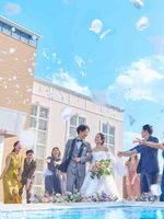 チャペルを出ると、そこは貸切のオープンスペース。青い空が広がり、さわやかな風を感じる開放的な空間で、挙式の感動そのままにアフターセレモニーがスタートします。 ゲストの皆様にフラワーシャワーで祝福をいただいたり、幸せを願ったバルーンリリースなど様々の演出が叶えられます。