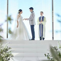 【きらめく海と空を独占する感動のオーシャンビューチャペル】どこまでも広がる水平線、茜色に染まるサンセット…特別な瞬間がおふたりの誓いを彩ります。非日常空間で、ゲストの記憶に残る1日を。