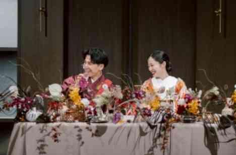熊本らしさの共有 熊本県産森のくまさんを使用して、披露宴中におにぎりを 作り合い、お互いに好きな具材を入れて…♡ 美味しいご飯をありがとうの気持ちを込めて、大切な人へ… 再入場のブーケもドレスの色目に合わせてコーディネート 装いも新たな入場なので会場内も大盛り上がり どのシーンもふたりとゲストの笑顔が溢れるアットホームな結婚式