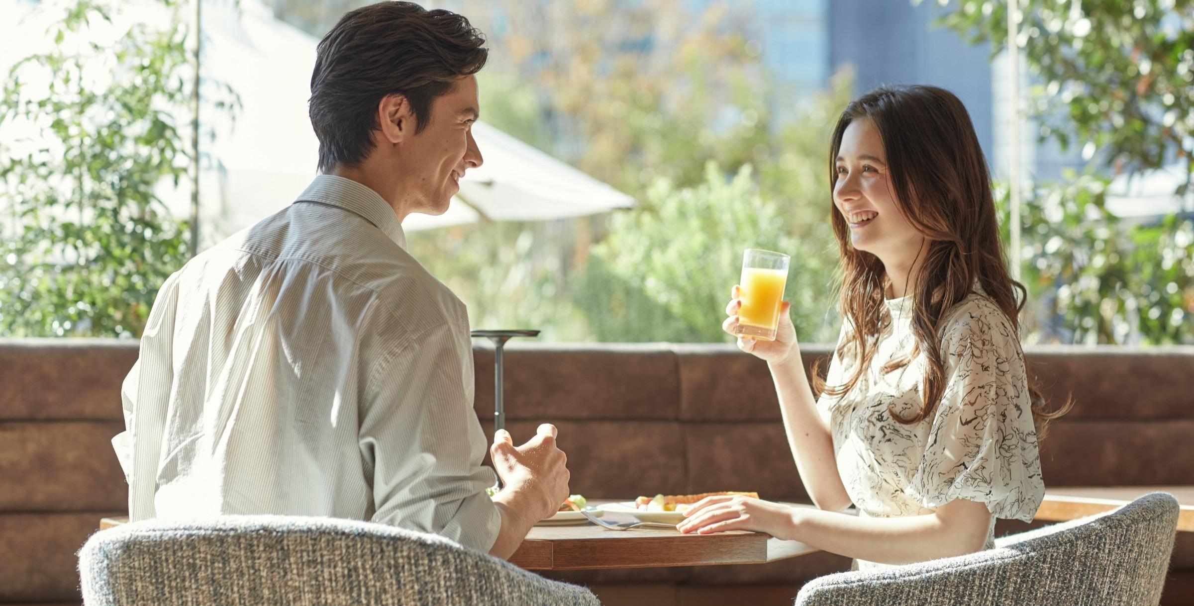 翌日も慌ただしさとは無縁。朝陽のなか朝食を味わいながら、ふたりで式当日のことを振り返って「ただホテルに泊まる」ではなく「心を整えて新しい一歩を踏みだす」ためのご滞在。