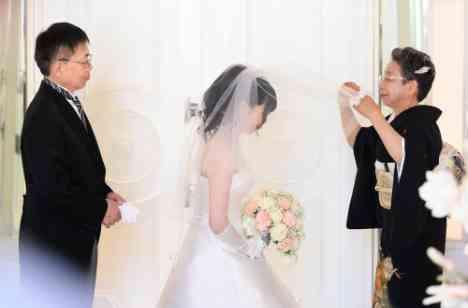 大切に大切に育ててきてくださったご両親との大切な時間。お父さまとのご入場ののち、お母さまにベールダウンをしていただきました。お母さまはさみしい気持ちもありますが「幸せになってね」「いってらっしゃい」とバージンロードに送り出してくださいます。そこからの一歩一歩は、生まれてこれまでの人生を振り返りながら、全ゲストのお近くを通っていただきます。