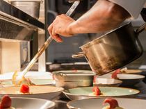 パーティ会場に隣接したキッチンから、お二人の進行に合わせて作られるお料理! 出来立てをベストなタイミングでゲストの皆さまにお届けします -