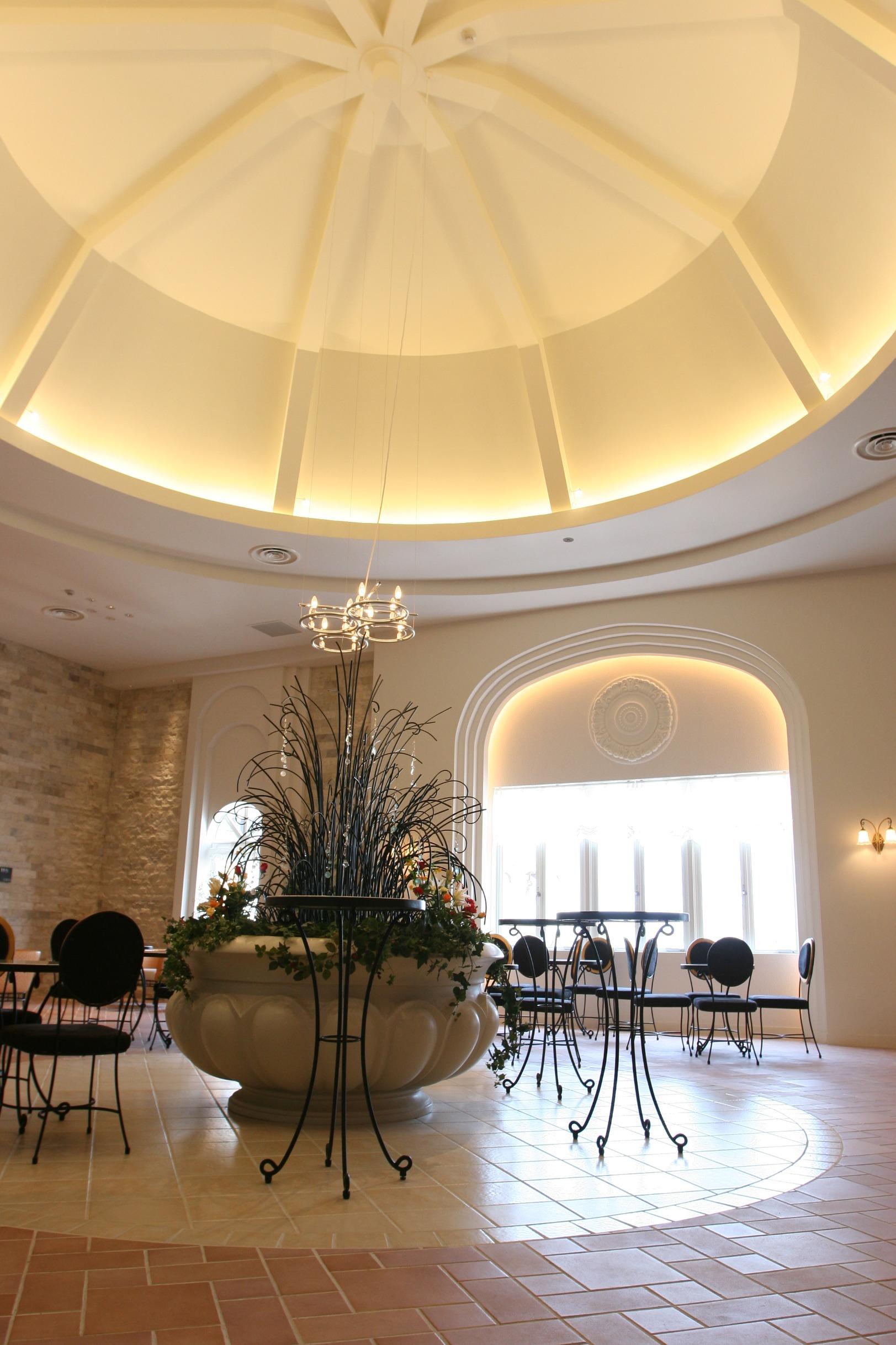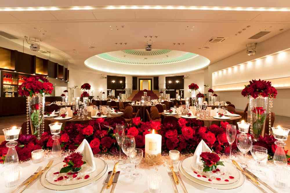 ワンランクアップされたウェディングを実現する格調高き王妃の宮殿。 イタリア製の大理石テーブルと椅子や、ヨーロピアンテイストの調度品。 光が降り注ぐレセプションフロアはまさに王侯貴族の宴のよう。
