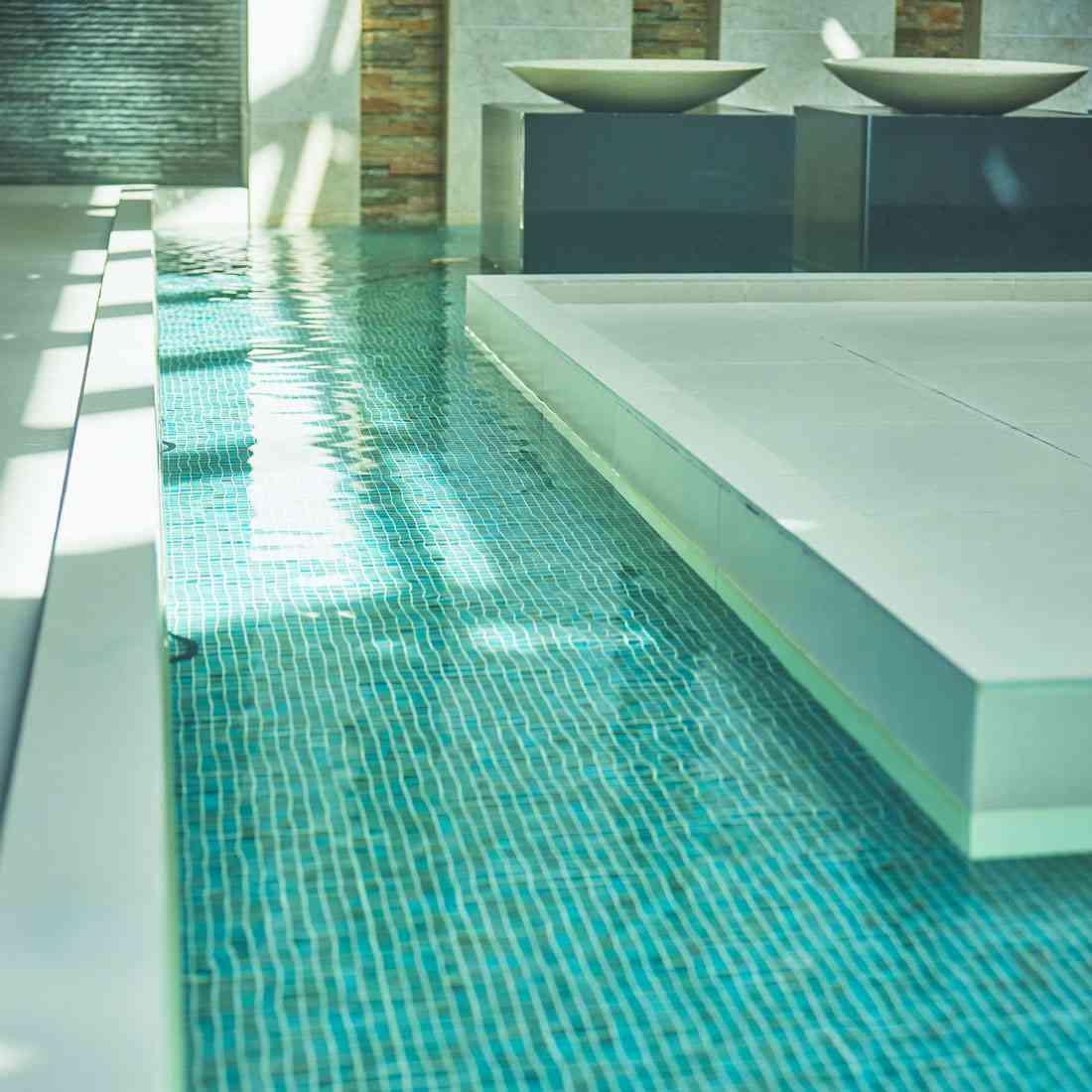 洗練されたデザインのウォーターステージ。柔らかな光と爽やかな水のコントラストで優しい時間が流れる アフターセレモニーや前撮りなど様々な使い方が出来る