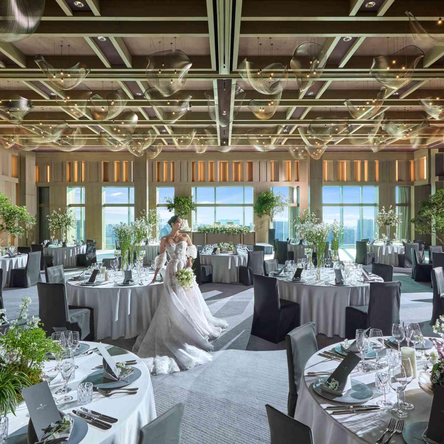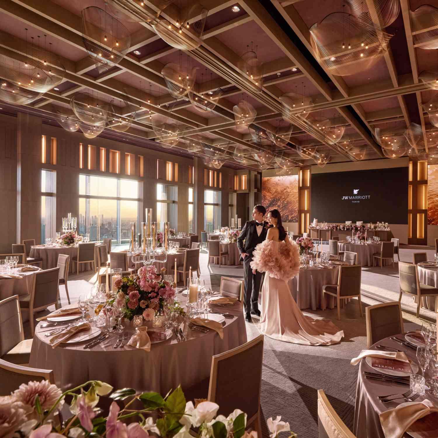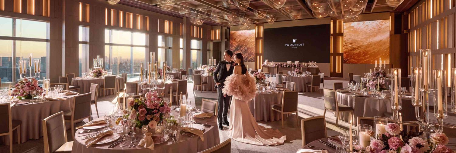 2025年10月に開業したJWマリオット・ホテル東京のウエディングは、ホテル高層階からのダイナミックに広がる東京の空を背景に、心からあふれるおふたりの想いを、いかにゲストの皆様に届けるかを何より大切にしています。洗練された空間やおもてなしによって、忘れられない一日をご一緒につくってまいります。